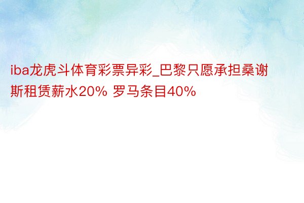 iba龙虎斗体育彩票异彩_巴黎只愿承担桑谢斯租赁薪水20% 罗马条目40%